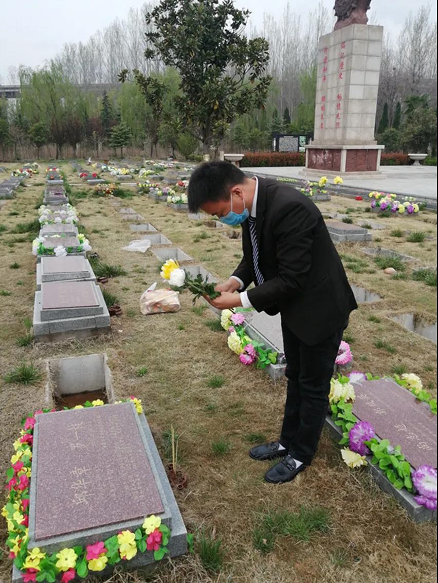 對墓碑進行清理并除草、獻上一支鮮花、鄭重鞠躬三下……上午,北邙南山陵園公墓里的一座墓碑前,北邙南山陵園公司幾名工作人員一絲不茍地做著“代祭掃”工作