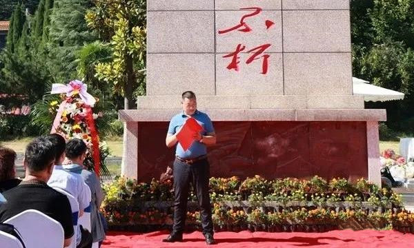上午9時3分,在洪亮的國歌聲中,中共洛陽市委統(tǒng)戰(zhàn)部副部長龐明新、民革洛陽市委會副主委孫國平向主題紀(jì)念碑敬獻(xiàn)花籃,并與在場100多位民革黨員一道鞠躬致敬。